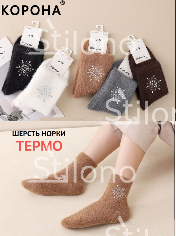 Женские термоноски из шерсти норки со стразами